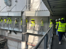Exkurze začala promítáním krátkého dokumentu, který nám přiblížil cestu odpadu – od vyhození, přes třídění, až po využití ve spalovně. Následně jsme si oblékli reflexní vesty a ochranné přilby a vydali se do samotného provozu.