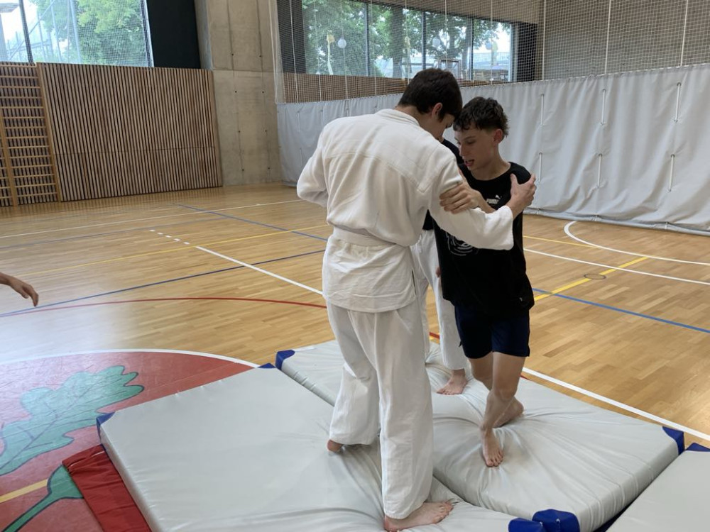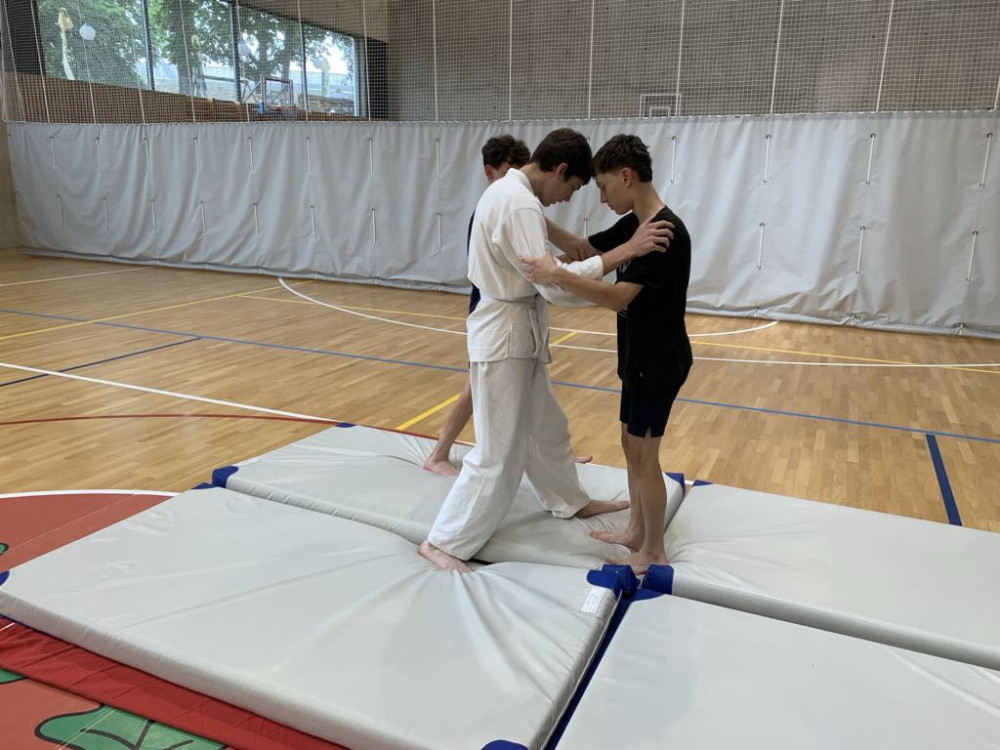 Žáci z 8.B a 8.A, Lukáš Maděra, Ondřej Slezák a Šimon Šmíd si připravili pro své spolužáky hodinu JUDA. Začali tematickou rozcvičkou, procvičily obraty a pády. Poté se vrhli na techniky boje, kde si chlapci mohli procvičit úchopy, vychýlení z rovnováhy, hody, držení a další. Hodina se velice vydařila, chlapci byli nadšení hlavně z techniky boje, kde si mohli vyzkoušet, že ne vždy vítězí silák, ale ten, kdo ovládá správnou techniku.