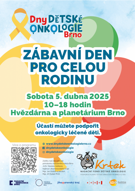 Zakončení Dnů dětské onkologie proběhne 5. dubna 2025 v Brně. Podrobný program naleznete na stránkách: www.dnydetskeonkologiebrno.cz/program.php