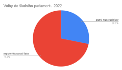 V pátek dne 23.9. se na naší škole konaly volby do školního parlamentu. Volební účast žáků byla byla poměrně vysoká. Voleb se účastnilo 62 % voličů. Mnoho z nich si bohužel nepřečetlo pozorně instrukce, a proto muselo být skoro 100 hlasů vyhodnoceno jako neplatných. O volbě nakonec rozhodovalo 58 žáků z 241 možných. Díky tomu byl rozhodující opravdu každý hlas. Nakonec jako hranice pro účast na školním parlamentu byl stanoven zisk alespoň tří hlasů. Školní parlament bude mít v letošním školním roce dokonce 11 členů. Na první setkání se členy se těším ve čtvrtek 6.10. o velké přestávce ve studovně.