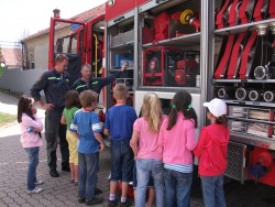My děkujeme hasičům ze Židlochovic, kteří s velkou ochotou a trpělivostí zodpovídali všetečné otázky našich žáků. Děti si mohly vše osahat, potěžkat a třeba i vyzkoušet tíhu ochranného obleku a helmy.