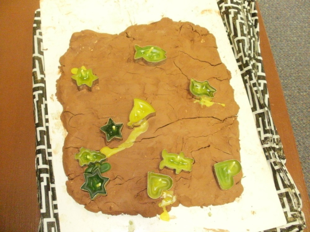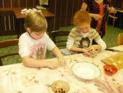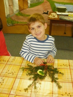 V jiné místnosti děti odlévaly barevné svíčky a vytvářely své ozdobné větvičky s mašličkami, šiškami a jinými ozdůbkami.
