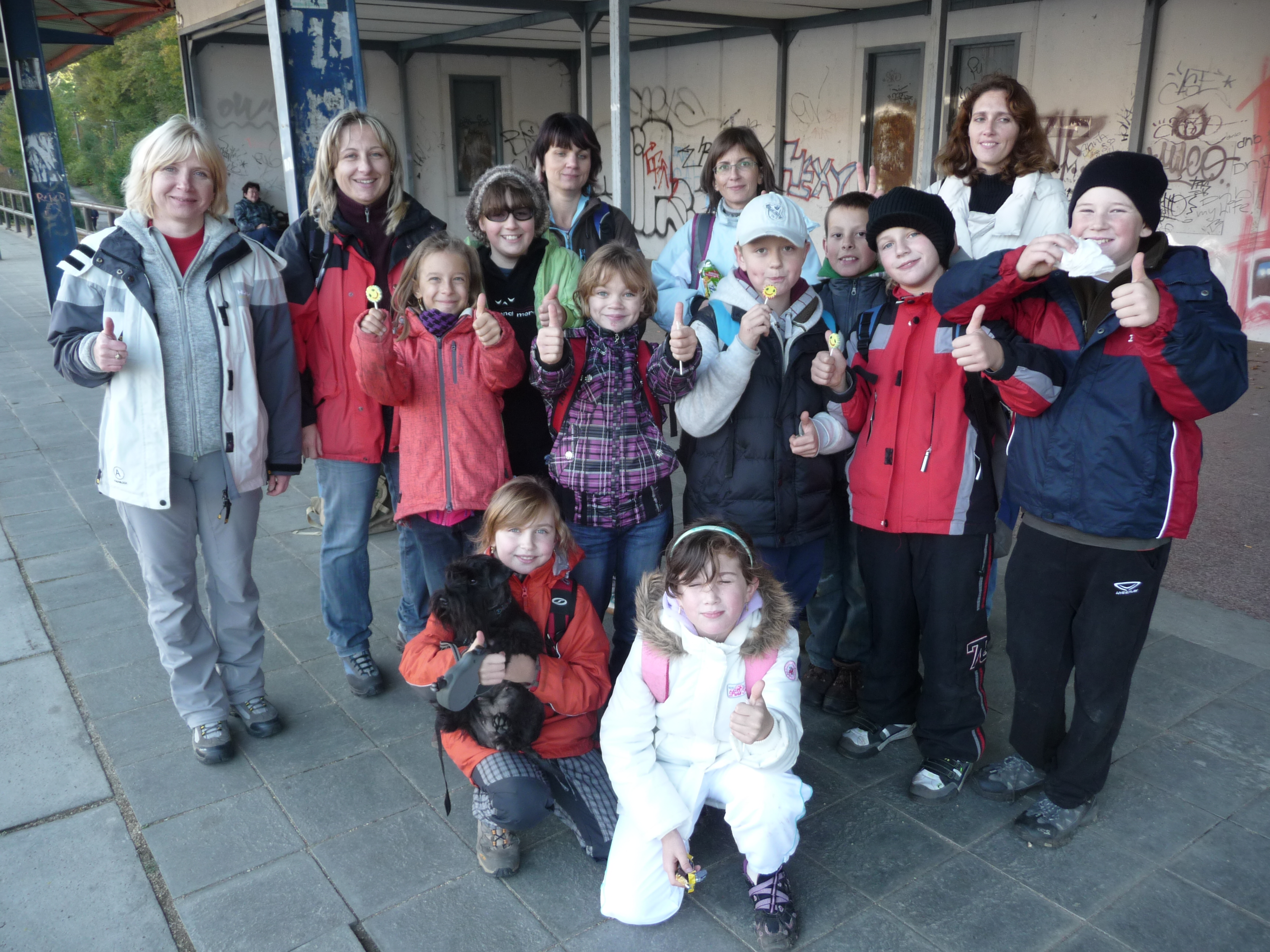 Měli jsme sraz v 8:20 hodin. Bylo tam 9 dětí a 5 rodičů plus p. učitelka. Odjeli jsme v 8:36 – 38. Jeli jsme vlakem do Blanska na Čertův hrádek.Když jsme vystoupili, p. učitelka nám vysvětlila, co budeme dělat. Potom nás Verča chvíli vedla, kam máme jít. Šli jsme po zelené značce. Když už Verča nevěděla, kam máme jít, tak jsme šli podle p. učitelky. Během cesty jsme hráli na schovávanou. Také jsme museli vyšlapat vééélký kopec, takže jsme si dali přestávku a hráli jsme takovou hru o pokladu. Paní učitelka s pomocí pár maminek rozházely žluté papírky a p. učitelka je střežila, takže byla trojhlavý pes. A Eva si při tom poranila nohu. Nejvíc lístečků nasbírala Verčina skupina, druhá nejlepší skupina byla Evčina. Potom jsme došli na Čertův hrádek a tam jsme hledali poklad. Našla ho Anča, byly to bonbóny, které jsme rozdělili. (Napsali: Eva, Radek, Mia)