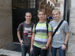 V úterý 25. října vyjely děti deváté, osmé a sedmé třídy se svými učiteli do vzdáleného hlavního města Itálie, Říma, přezdívaného Věčné město, Caput mundi nebo Mamma Roma. Těšili jsme se na památky, atmosféru věčného města, ale i na teplejší klima. To vypadalo zpočátku velmi neslavně, protože celou cestu až do Ostie, kde jsme měli ubytování, nám pršelo. Po příjezdu se znenadání roztrhla obloha a vykouklo sluníčko, které nás pak provázelo po celou dobu pobytu. Tři dny jsme procházeli město, které bylo přes dva tisíce let nejvýznamnějším městem Evropy, sídlem císařů a papežů s obrovským seskupením památek všeho druhu a stáří – od antického fóra, středověkých kostelů nebo prostě jen obyčejných uliček se zvláštní atmosférou. Prošli jsme nejznámější památky od antiky po pompézní barokní vatikánskou baziliku.