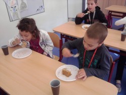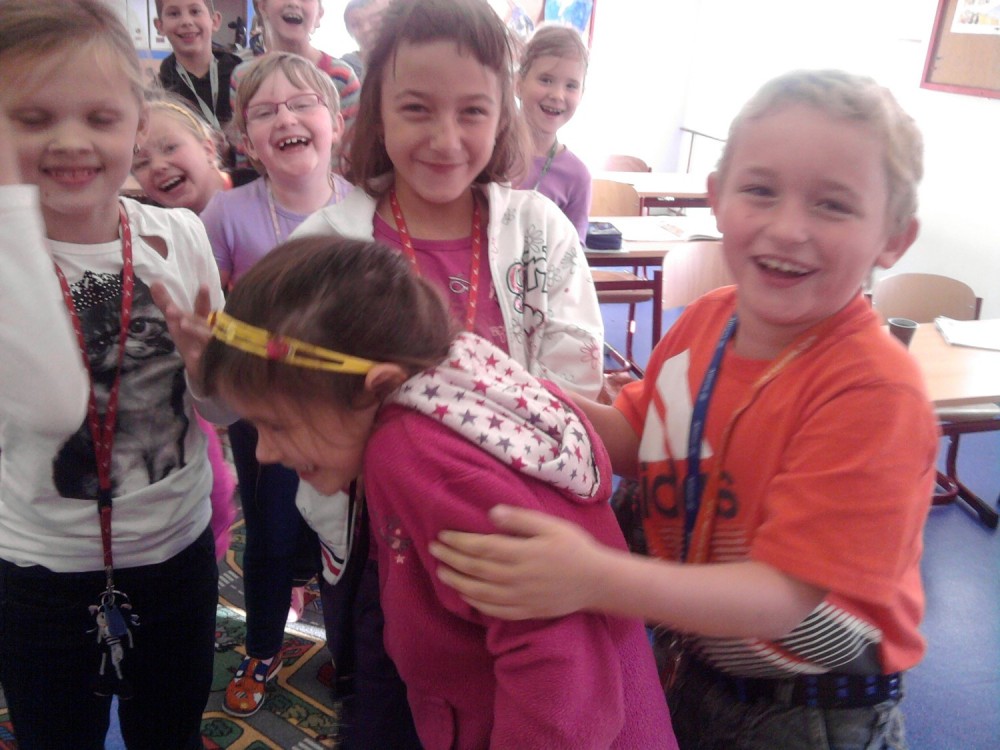 Dnes jsme ve třídě měli velkou oslavu narozenin. Kristýnka nás pohostila výborným medovníkem, chlebíčky, kolou a dětským šampaňským, každému donesla i kokinka. Děti se nadlábly, s nadšením jí přály vše nejlepší a padl i první polibek:)))