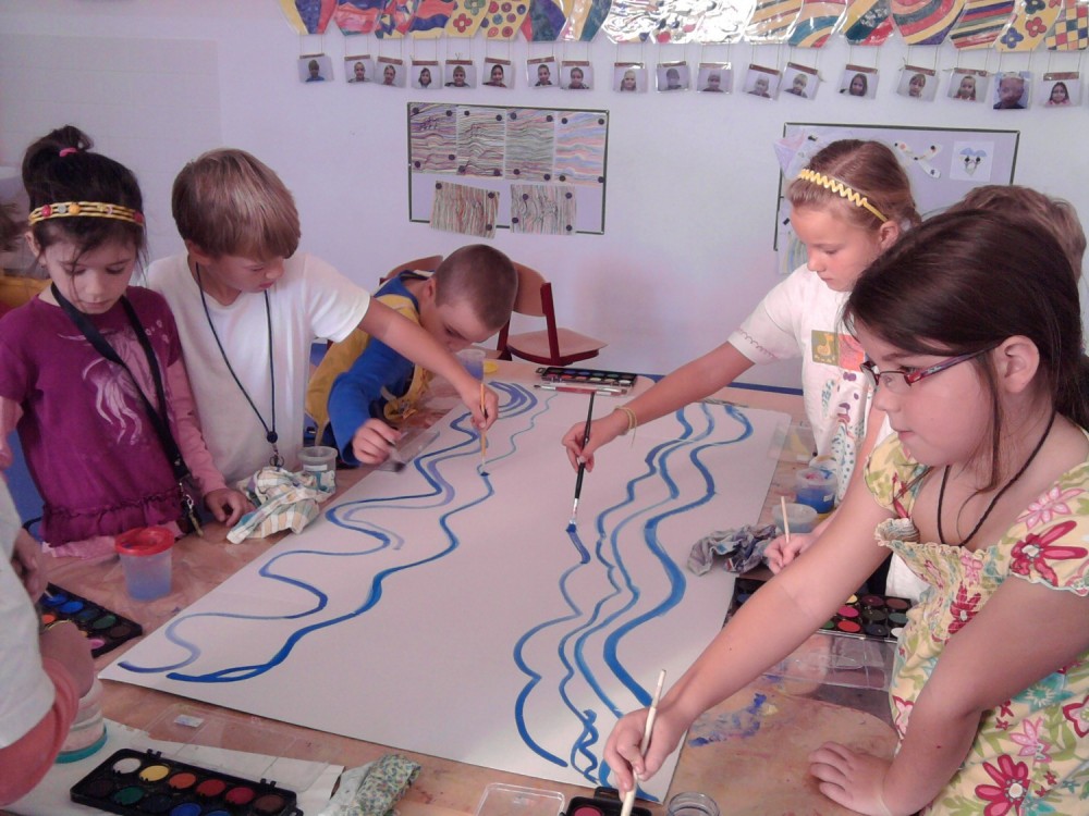 V prvouce jsme si vykládali o rybníce na podzim. Ve výtvarné výchově jsme jej ve skupinách malovali a v pracovních činnostech do něj vyráběli rybičky. Děti ovšem vyrobily i chobotničky a mušličky, žraloky a delfíny - takže z našeho podzimního rybníčku máme letní obrovské a barevné moře. Mooooooooooooc se nám ale povedlo:))))))))))