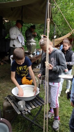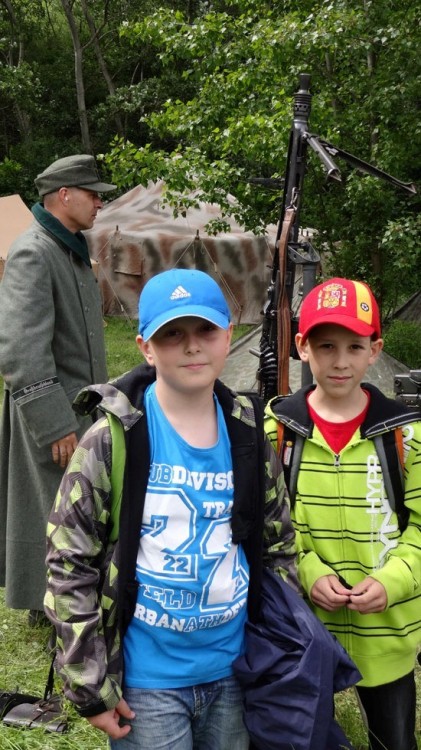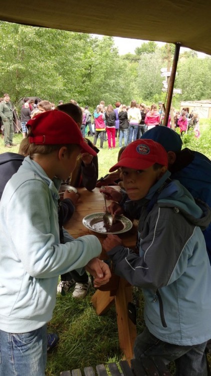 Páteční dopoledne jsme si zpestřili prohlídkou ležení ruských a německých vojáků, které byly připraveny na sobotní rekonstrukci bitvy v Modřicích pod kaštany. Děti tak na vlastní oči viděly, jak takový tábor vypadal a mohly si vyzkoušet i střelbu z různých zbraní. Nakonec jsme odcházeli plní zážitků a někteří i s plnými bříšky:-)...