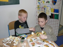 Všichni pracovali s plným nasazením a maximálním zaujetím.Výsledkem naší práce byla opravdová a navíc zdravá hostina připravená především z celozrnného pečiva, chutných pomazánek a zeleniny.Všem chutnal také ovocný salát a jako zákusek kousek piškotové bábovky.