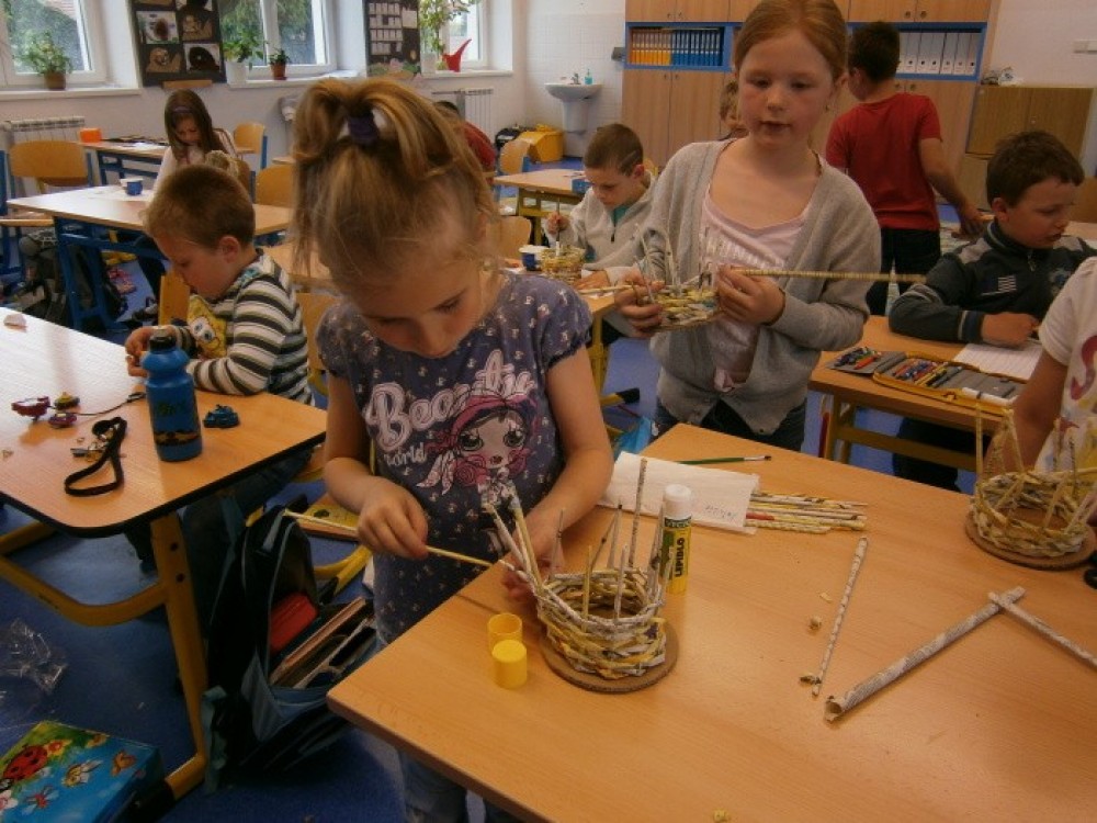 25. 6. 2013 Děti ve školní družině se naučily plést košíčky z papíru. Nejdříve si namotaly papírové ruličky, ze kterých upletly košíky. A nakonec je pomalovaly temperovými barvami. Valérie Štoksová 25 / 6 / 2013 JKa