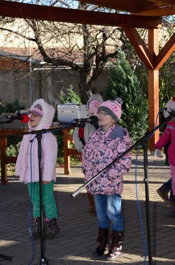 Při nácviku na Vánoční jarmark nás vítr málem odnesl, však také vystoupení muselo být kvůli větrnému počasí přesunuto do prostor školy.
