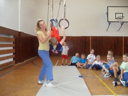 Včera jsme v hodině TV házeli žloutky z kindervajíček, za které všem, kdo donesli, moc děkuji. Dětem se hry s touto netradiční pomůckou moc líbily. Také jsme cvičili na kruzích, všichni byli moc šikovní! Nezapomněli jsme ani na hod míčem, ve kterém se stále zdokonalujeme.