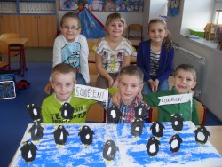 31. 1. 2015 - zasněžená zimní krajina - zimní sporty společná práce 1. a 5. oddělení - štěrchátko - rámečky - tučňáci na ledu samostatná práce - společná práce 5.oddělení tučňáci na kře 31 / 1 / 2015 KV