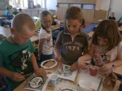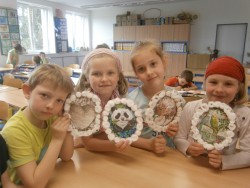 25. 5. 2015 V 1.oddělení děti lepily gázu na papírový rámeček. Někteří ho vylepšily obrázkem vytvořeným pomocí ubrouskové techniky. Vznikly moc hezké obrázky. 26 / 5 / 2015 VS