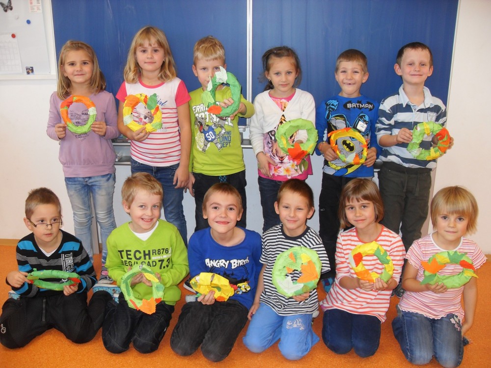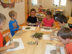 31. 10. 2014 - práce s keramickou hlínou - otisky přírodnin - odpočinek s pohádkou - krmítka - stavebnice SEVA - naše nástěnky - věnečky na Dušičky 31 / 10 / 2014 KV
