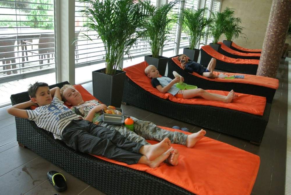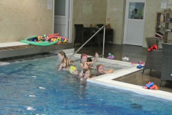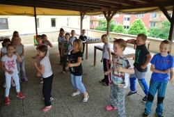 Dnes jsme prožili úžasné sportovní dopoledne v centru Hastrmánek. Nejprve jsme kvůli dešti plnili soutěžní úkoly na terase - stříleli jsme z luku, malovali jsme společný obraz a závodili v taneční soutěži. Potom jsme se přesunuli k bazénu, kde se půlka třídy snažila ve vířivce foukáním do balónků dát co nejvíce gólů do soupeřovy branky, druhá půlka lovila v bazénku kroužky, plavala a na závěr seskakovala z překážky do vody. Pak se obě půlky prostřídaly. Třetí úkol byly různé hrátky s kartičkami o body. Na závěr nás čekalo vyhlášení mezi třídami - každá třída v něčem zvítězila, takže jsme odcházeli všichni spokojení, dokonce všichni obdrželi dárek! Moc děkujeme všem organizátorům za báječně prožité dopoledne, všem se nám moc líbilo!!!