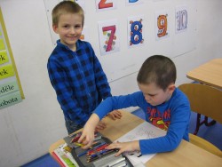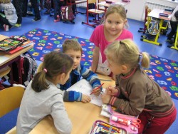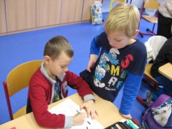 Zápis do 1. tříd se blíží, proto nás dnes navštívili předškoláci z MŠ Modřice, aby se podívali, co je ve škole čeká. My jsme jim předvedli, jak se učíme v matematice, co probíráme v českém jazyce a jak nám jde čtení. Předškoláci si vyzkoušeli, jaké to je, sedět v lavicích jako opravdoví školáci. My jsme se naopak proměnili v paní učitelky a pány učitele a pěkně jsme dohlíželi, jak to jde předškolákům v pracovních listech. Všichni pracovali výborně a zasloužili si od nás razítko. Na závěr hodiny jsme jim předvedli část hudební výchovy - a zazpívali jim písničku Adámku náš, aby také zjistili, jak by to vypadat nemělo...