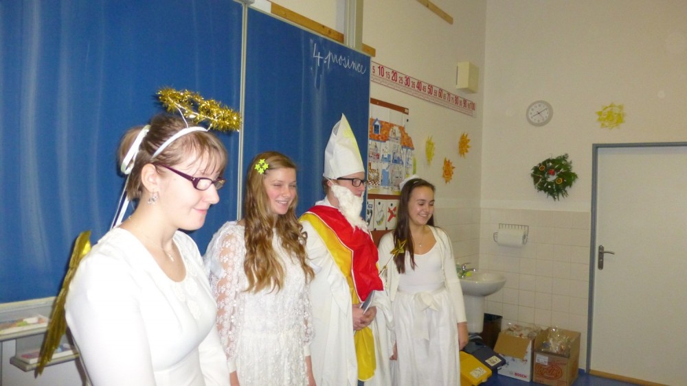 V pátek 4.12. přišel do naší třídy Mikuláš v doprovodu své družiny andělů a čertů,aby zjistil, jestli jsme byli hodní. Protože všichni buď hodní byli, a ti co přece jenom někdy zlobí slíbili, že se polepší, dostali jsme od Mikuláše pěknou nadílku.Čertíky jsme si také namalovali a moc se nám povedli.
