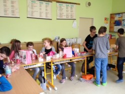 Po návratu do školy jsme také shlédli nádherné představení Anděl Páně, ve kterém hrály naše spolužačky Klárka s Bětkou. Pohádka se nám velmi líbila a obdivovali jsme herecké nasazení mnoha našich spolužáků. Po divadelním vystoupení jsme se posilnili cukrovím, které jsme si do školy donesli. Vzájemně jsme si cukroví ochutnali a pochválili šikovnost maminek. Některé cukroví bylo neodolatelné. Společně jsme si připili dětským šampanským na úspěšný nový rok a zakousli pár brambůrek. Po přípitku náledovalo námi všemi toužebně očekávané rozdávání dárečků. A že jich pod stromečkem bylo. Děkujeme Ježíšku.