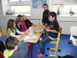 16. 1. 2016 - malování fixem na textil, kapsička naplněná čočkou - teplo do kapes - rohová záložka do knihy - zimní radovánky na hřišti - výzdoba nástěnek - tučňáci na sněhu, ledu - spolužáci předvádí své hudební nadání 16 / 1 / 2016 KV