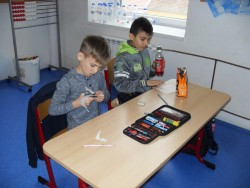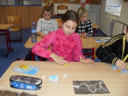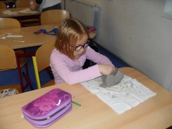 27. 2. 2016 každý si vytvořil vlastní papírovou šablonu, kterou přenesl na keramickou hlínu tvoříme pomoci plasteliny a alobalu vyměňujeme si nálepky 27 / 2 / 2016 KV