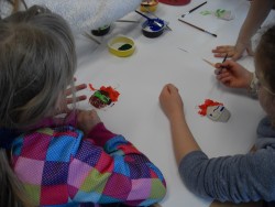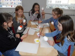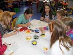 24. 3. 2016 Velikonoční tvoření - keramické stojánky na ubrousky, závěs jarní motiv - ovečky na louce - sádrové odlitky vajíček, kuřátek, zajíčků - hlavičky zajíčků - zdobení vajíček 24 / 3 / 2016 KV