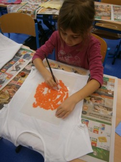 24. 11. 2015 Děti z 1.oddělení si vytvořily krásná trička s pomocí barviček na textil a šablonek. 25 / 11 / 2015 VS