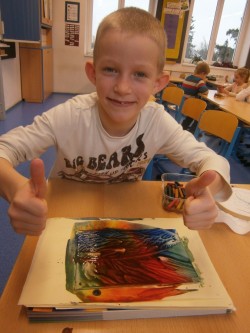 Enkaustika je technika malování horkým voskem. Použili jsme žehličku, voskovky a vznikly nádherné obrázky.