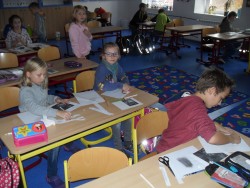 Dokončujeme práci na dárečku pro rodiče, textilní barvou zdobíme oblečení, glazujeme a zdobíme svícny na jarmark.