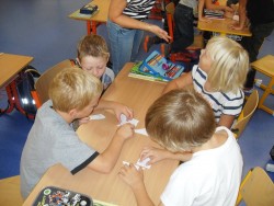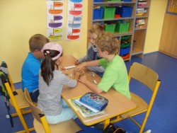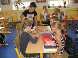 V rámci dne jazyků, který u nás v pondělí proběhl, jsme si přopomněli letní olympijské hry. Skládali jsme puzzle, ze kterých jsme vyluštili některé sporty, zkoušeli jsme překládat a srovnávat slovíčka - protože jsme si vybrali němčinu, nebylo to nic lehkého!, přečetli si něco o historii OH, každý namaloval svoje vylosované slovíčko a na závěr jsme řešili kvíz, abychom zjistili, co jsme si zapamatovali. Naše výtvory jsme společně nalepili na plakát a teď už se těšíme, až si také prohlédneme práce našich spolužáků z ostatních tříd.