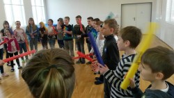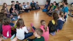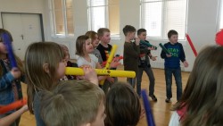 V pondělí 20.3. jsme se zúčastnili zajímavého výukového programu. Vyzkoušeli jsme si, že hrát se dá na ledacos, třeba i na vlastní tělo. Seznámili jsme se s neobvyklými hudebními nástroji- africkými bubny, djembe, dunduny, balafonem, harfou kora a také jsme si vyzkoušeli,jak si na ně umíme společně zahrát.