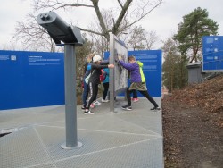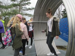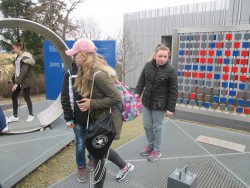 Dalším bodem programu byla návštěva Vědecké stezky, skupiny interaktivních exponátů instalovaných venku před hvězdárnou. Zde si žáci mohli vlastními smysly vyzkoušet různé fyzikální jevy, a tak poznávat fungování světa kolem nás.