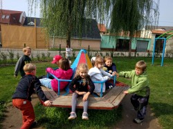 Hezké počasí láká ke cvičení venku.Když nám to pěkně jde, za odměnu se svezeme na kolotoči.