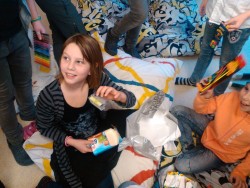 Někdo dostal knihu, jiný školní potřeby. Naučili jsme se, že dárky jsou ze srdce a všichni jsme se z nich moc radovali a mnohé z nich si i vyzkoušeli – puzzle, autíčka, ale i např. gumu ve tvaru jednorožce. Od paní učitelky jsme dostali kinetický písek, se kterým tvoříme zajímavé stavby a prostorové předměty.
