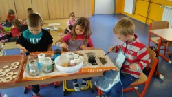 Na tradiční předvánoční jarmark jsme se připravovali několik týdnů dopředu. Začali jsme s modelováním keramických misek, svícnů a ozdob. Práce nám šla hezky od ruky a hlavně nás to náramně bavilo. Když nastal slavnostní den, pustili jsme se do prodeje výrobků. Na jarmarku jsme zvládli i společně zazpívat píseň a popřát všem šťastné a veselé Vánoce.