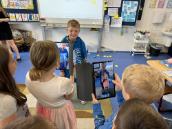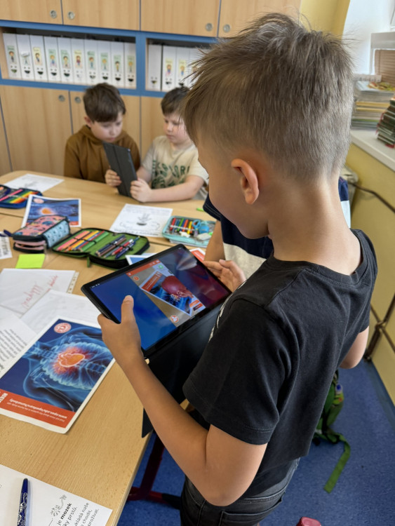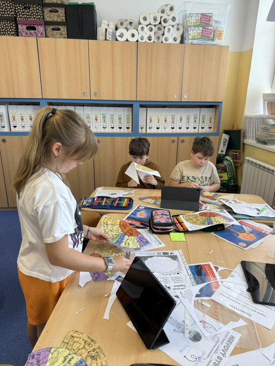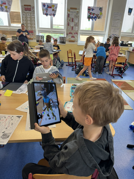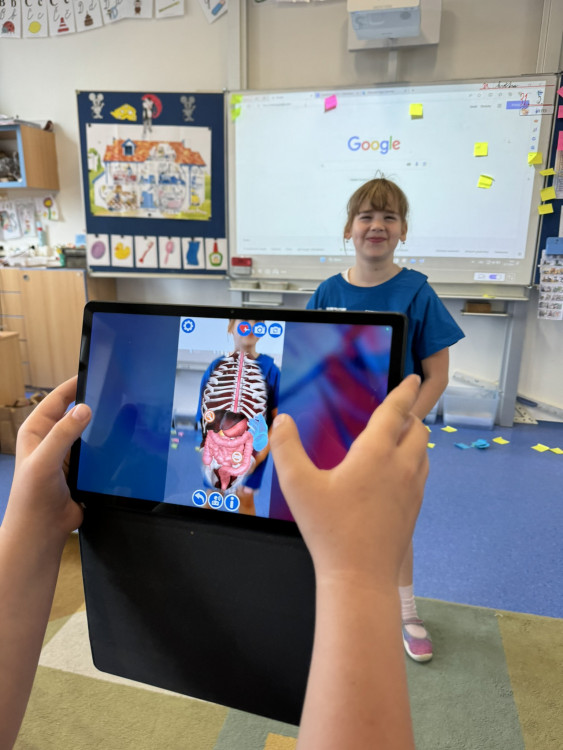 Program Začít spolu není jen o centrech aktivit, ale také o snaze zapojit do procesu učení i rodiče. Proto jsem s velkou vděčností přijala nabídku paní Matějkové, která sestavila pro děti výukový program zaměřený na prohloubení znalostí a vědomostí o lidském těle. Výuková lekce byla postavena na modelu E-U-R, tedy evokaci, uvědomění, reflexi a všechny aktivity byly podpořeny rozvojem digitálních kompetencí. Během dvou vyučovacích hodin jsme stihli vyhledávat informace hlasem, slepili jsme mozek, rozpohybovali jsme obrázek, díky digitálním technologiím jsme si mohli prohlédnout části lidského těla ze všech stran, nebo se podívat, jak to vypadá uvnitř našeho těla.