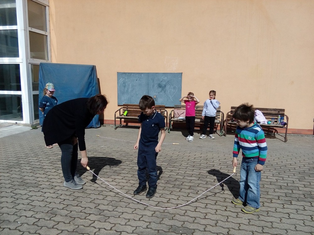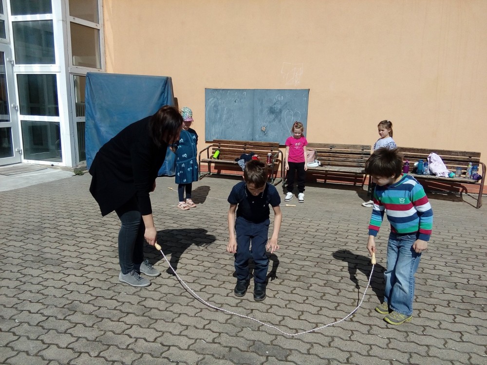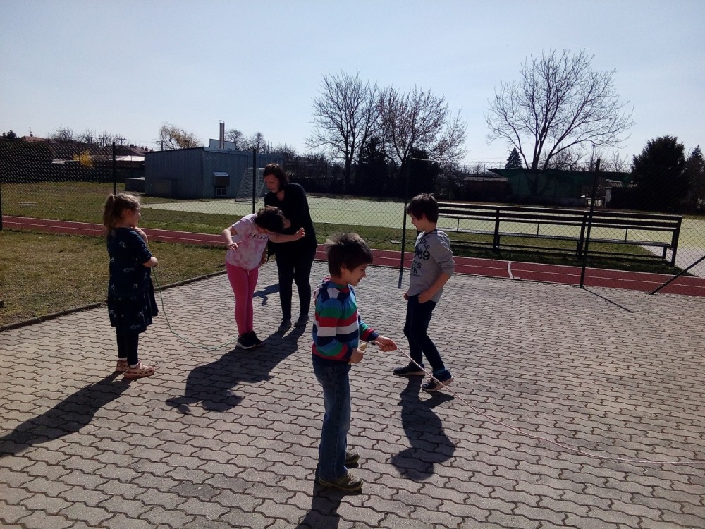 29. 3. 2022 ŠD - 3. oddělení odpoledne na školním hřišti Benešova. Skáčeme přes gumu, švihadlo, hrajeme míčové hry. V budově si hrajeme se stavebnicí, zvířátky, hlavolamem. 29 / 3 / 2022 KV