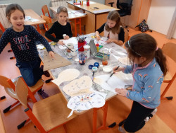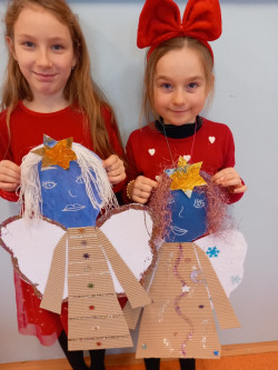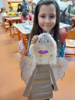 6. 1. 2025 Těsně před Vánocemi jsme si vytvořili anděly z vlnité lepenky, bílého kartonu a pracovali jsme s inkoustem a zmizíkem. Andělé se nám povedli, práce nás moc bavila :-) 23 / 1 / 2025 BJ