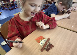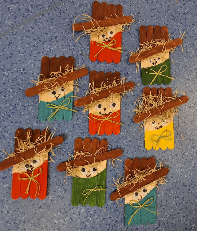 23. 10. 2025 Společně tvoříme strašáka. Není to však ten, který má plašit ptáky, ale poslouží nám jako drobná dekorace třeba do květináče🙂. Naši práci uvidíte ve fotogalerii 🙂. 23 / 10 / 2025 SkS