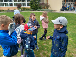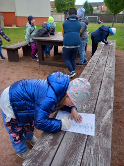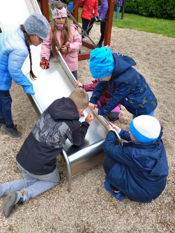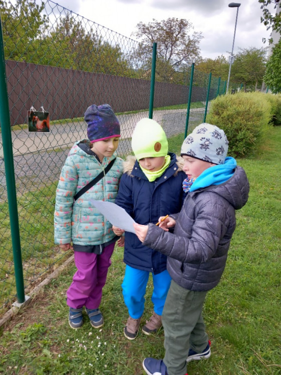 V rámci svátku Dne Země 22. dubna jsme si nejprve v ranní družině povídali o ochraně přírody, o rodinných výletech za krásami naší země a o hledání kešek, tzv. geocachingu. Odpoledne jsme si zasoutěžili v poznávání zvířat z celého světa podle fotografií, které byly rozmístěny po celé zahradě. A tak jsme poznávali, zapisovali do tajenky a radili se. Pro nás prvňáky byla soutěž docela těžká, najít, poznat a zapsat 26 zvířat nám dalo práci. Ale zvládli jsme to na výbornou! Další den jsme si postavili na Plácku hmyzí domeček z klacíků a v trávě u budovy Benešova hledali čtyřlístky pro štěstí. A našli jsme :-)
