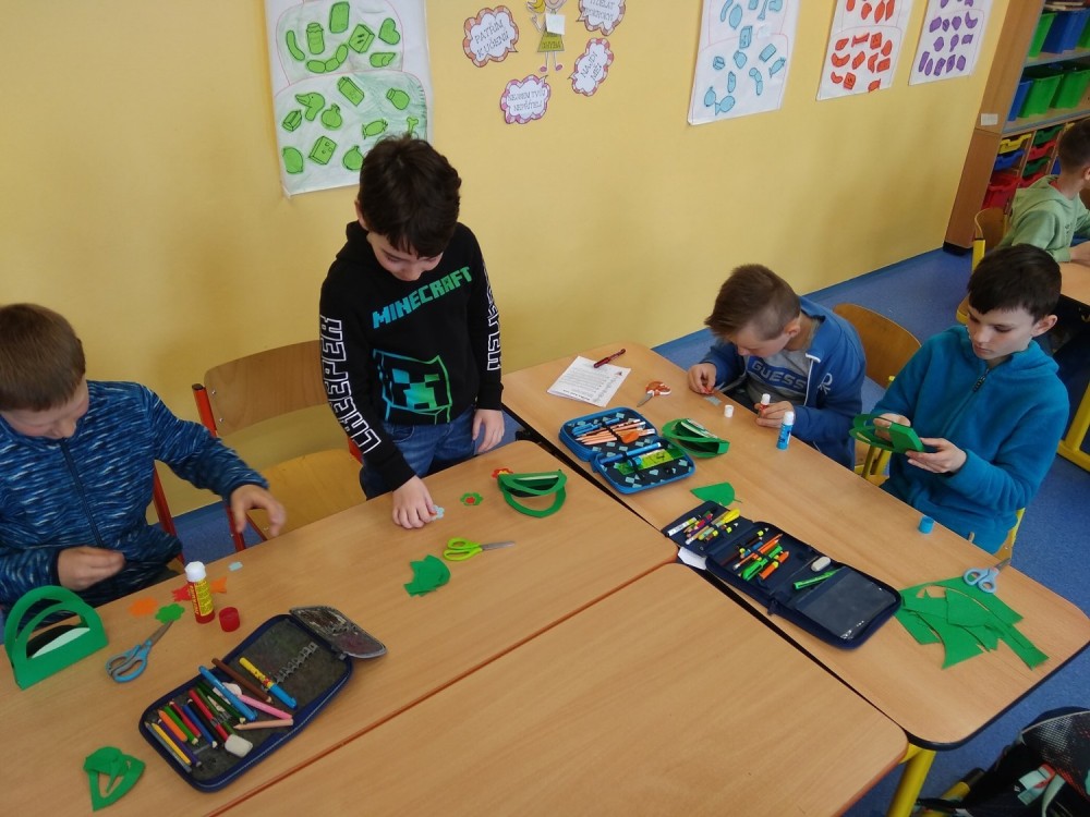 Dubnové tvoření ve školní družině, pobyt na hřišti.
