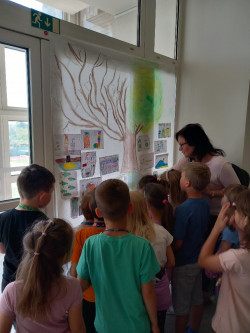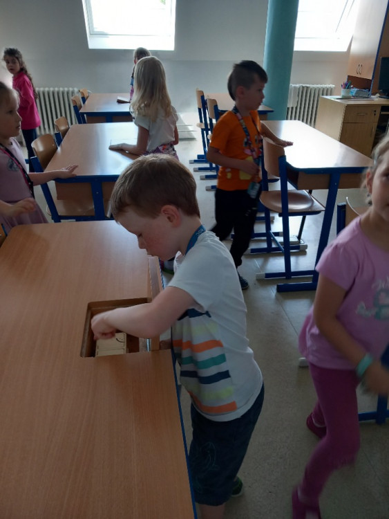 Nedávno jsme se setkali s tím, že mohlo dojít ke zneužití fotografie jednoho našeho spolužáka. Proto jsme si povídali o kyberšikaně. Co to je, jak jí předcházet, komu se svěřit, pokud bychom se ocitli v nějaké podobné situaci. Jsme sice teprve žáky 1. ročníku, ale někteří z nás mají mobilní telefony, také přístup k sociálním sítím, jako je TikTok, Instagram apod. Paní vychovatelka objevila na nástěnce na budově Benešova pěkně zpracované téma o kyberšikaně od starších žáků, proto jsme využili ředitelského volna a vydali se po obědě na malou exkurzi. Někteří jsme tu byli poprvé. Překvapili nás velké chodby, stolní fotbálek a stůl na pin-pong. Samozřejmě jsme si přečetli informace o kyberšikaně, živě jsme diskutovali na toto téma. V dalším patře nás zaujala nástěnka se zajímavostmi o planetě Zemi. Také jsme se zastavili u velkého plakátu na chodbě a pověděli jsme si něco o ekologii. Proč je třeba přírodu chránit, pečovat o ni, třídit odpad. Potom jsme si prošli některé třídy, líbilo se nám v učebně fyziky a dokonce jsme si trochu odpočinuli na vacích :-)