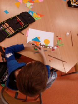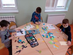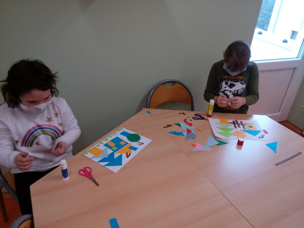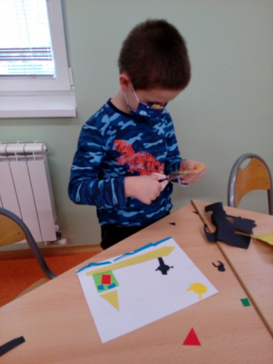 2. 2. 2021 Předškoláci tvoří obrázky z geometrických tvarů, které opakují i s paní učitelkou v dopoledních hodinách. Každý si vytvořil obrázek dle vlastního návrhu. Stříháme skládané přání ve tvaru srdce. 7 / 2 / 2021 KV