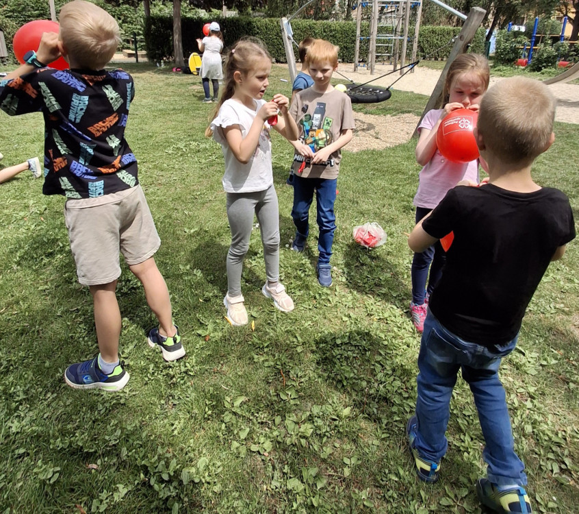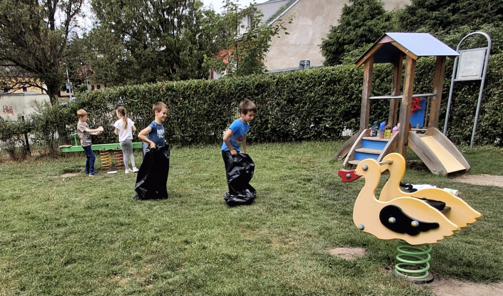 U příležitosti Dne dětí jsme se vydali na dětské hřiště Rybníček, kde jsme si to pořádně užili. Skákali jsme v pytli, procvičili chůzi s knihou na hlavě, zahráli si pingpong, nafoukli jsme si balonky a nakonec vyluštili jednoduchou tajenku. Počasí nám přálo a my si to určitě ještě někdy zopakujeme.🙂