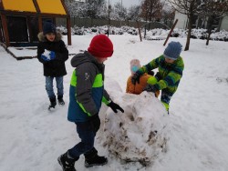 22. 12. 2021 Rádi chodíme každý den ven. Nejraději na zahradu školy nebo na Plácek mezi bytové domy. Ovšem když napadne sníh, to jsme ve svém živlu. A tak jsme si zase postavili krásné sněhuláky a z osmi koulí dokonce autobus :-) 22 / 12 / 2021 BJ