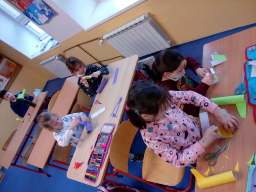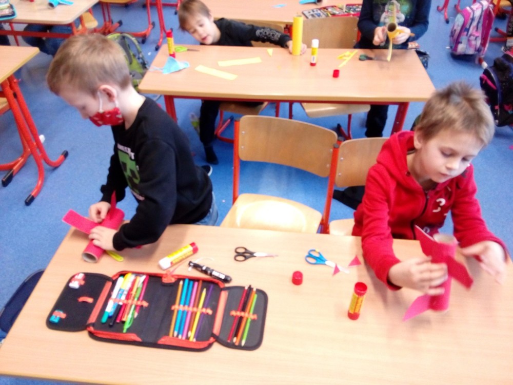 27. 1. 2022 Pohybové hry ve školní družině Rybičky, Honza, výtvarné práce výroba letadla. 28 / 1 / 2022 KV
