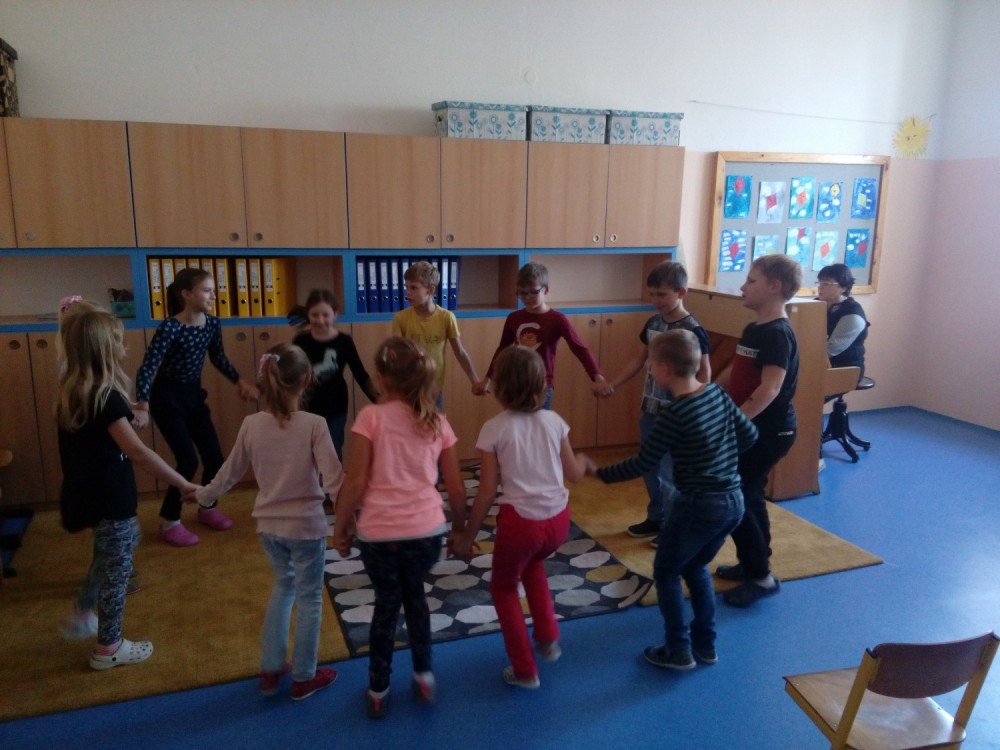 V pondělí se konalo druhé setkání s paní Kafkovou. Žáci v doprovodu klavíru společně zpívali písničky, vytleskávali, tančili.