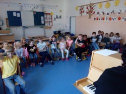 21. 10. 2019 V pondělí se konalo druhé setkání s paní Kafkovou. Žáci v doprovodu klavíru společně zpívali písničky, vytleskávali, tančili. 22 / 10 / 2019 KV