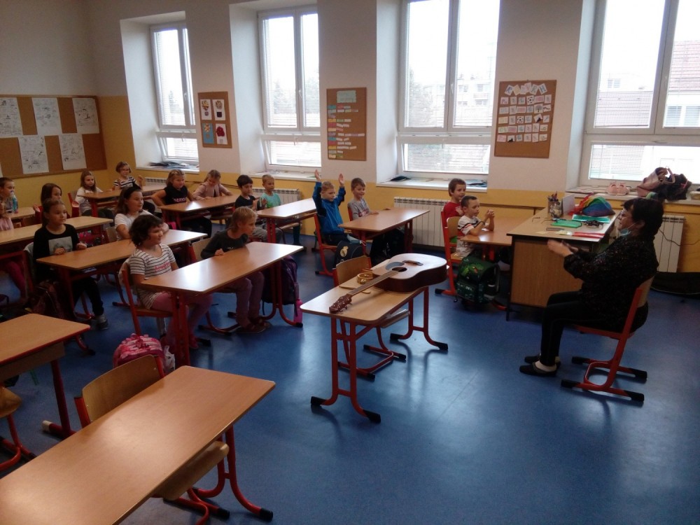 I druhé setkání ve 2.oddělení ŠD s paní Jitkou Kafkovou bylo fajn. Dnes jsme rytmicky vytleskávali a hádali názvy písniček, které paní Kafková hrála na kytaru. Celé setkání proběhlo bez zpěvu. Těšíme se na další setkání.