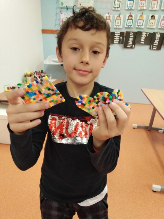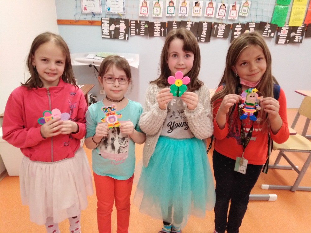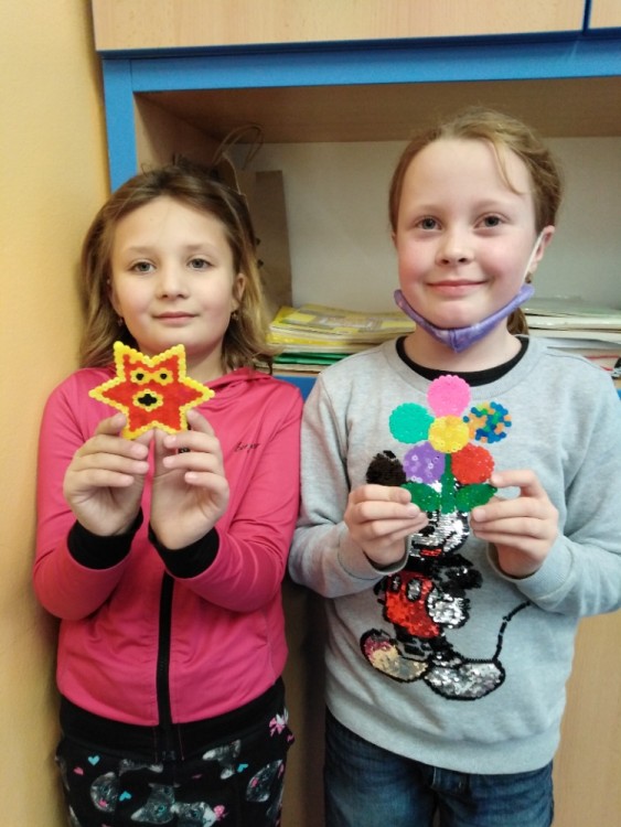 V poslední době tvoříme barevné podložky z nažehlovacích korálků.