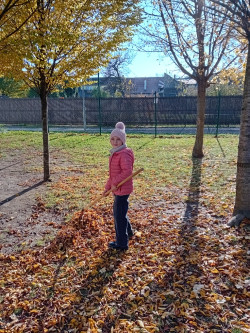 Rozhodli jsme se přiložit ruku k dílu a v rámci družiny pomoci s úklidem naší školní zahrady. Jelikož se na ní začalo hromadit listí, tak jsme popadli hrábě a pytle a dali se do práce. Díky tomu, že se nás hodně zapojilo, tak nám šla práce pěkně od ruky. Nejenže listí ze země rychle mizelo, ale i my jsme si u práce užili zábavu.